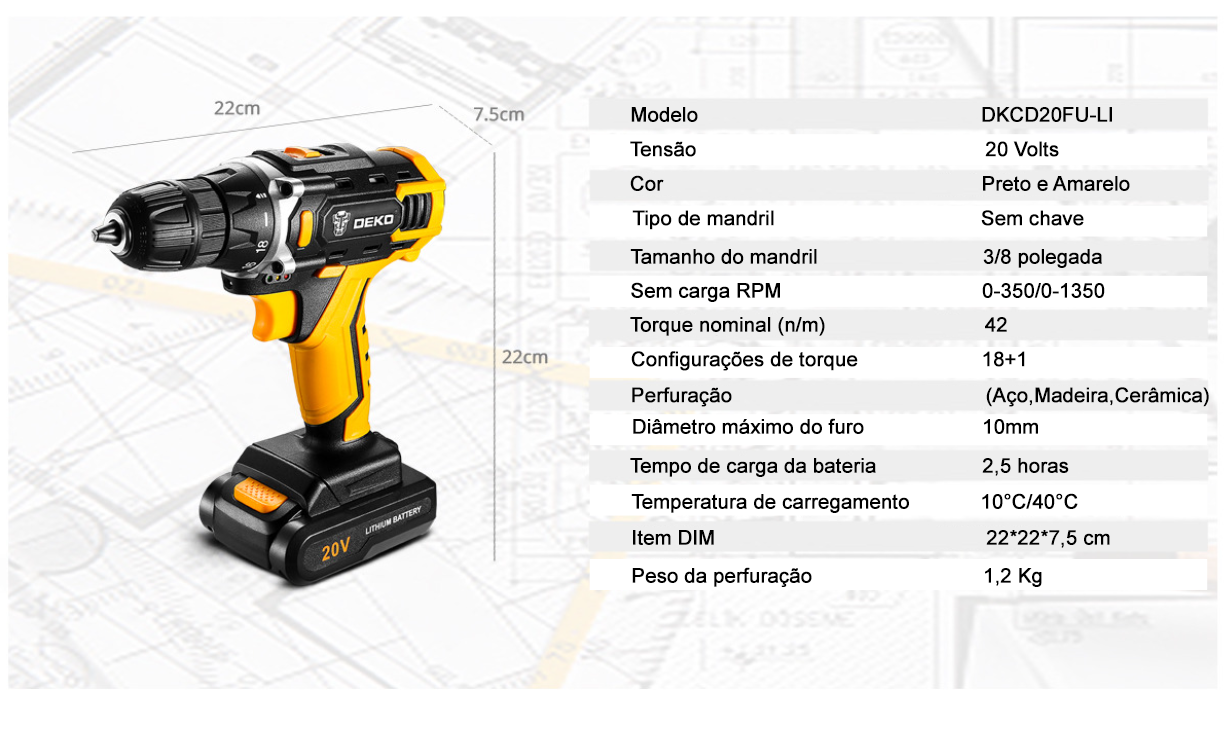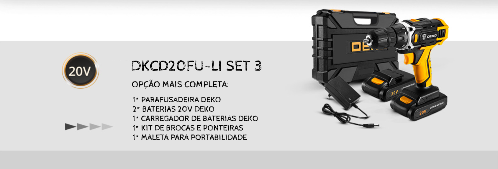 Parafusadeira Elétrica 20v com 2 baterias DEKO